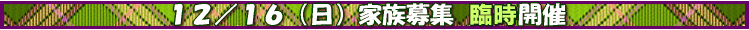 | 12月16日(日)の街頭募金活動は、家族募集開催の変更のため、中止することに致し ました。 資金が底を着き、医療費の支払いが出来ない情況が続いています。 家族募集会場にて、寄付金の募集をしています。ご協力を宜しくお願いします。 |